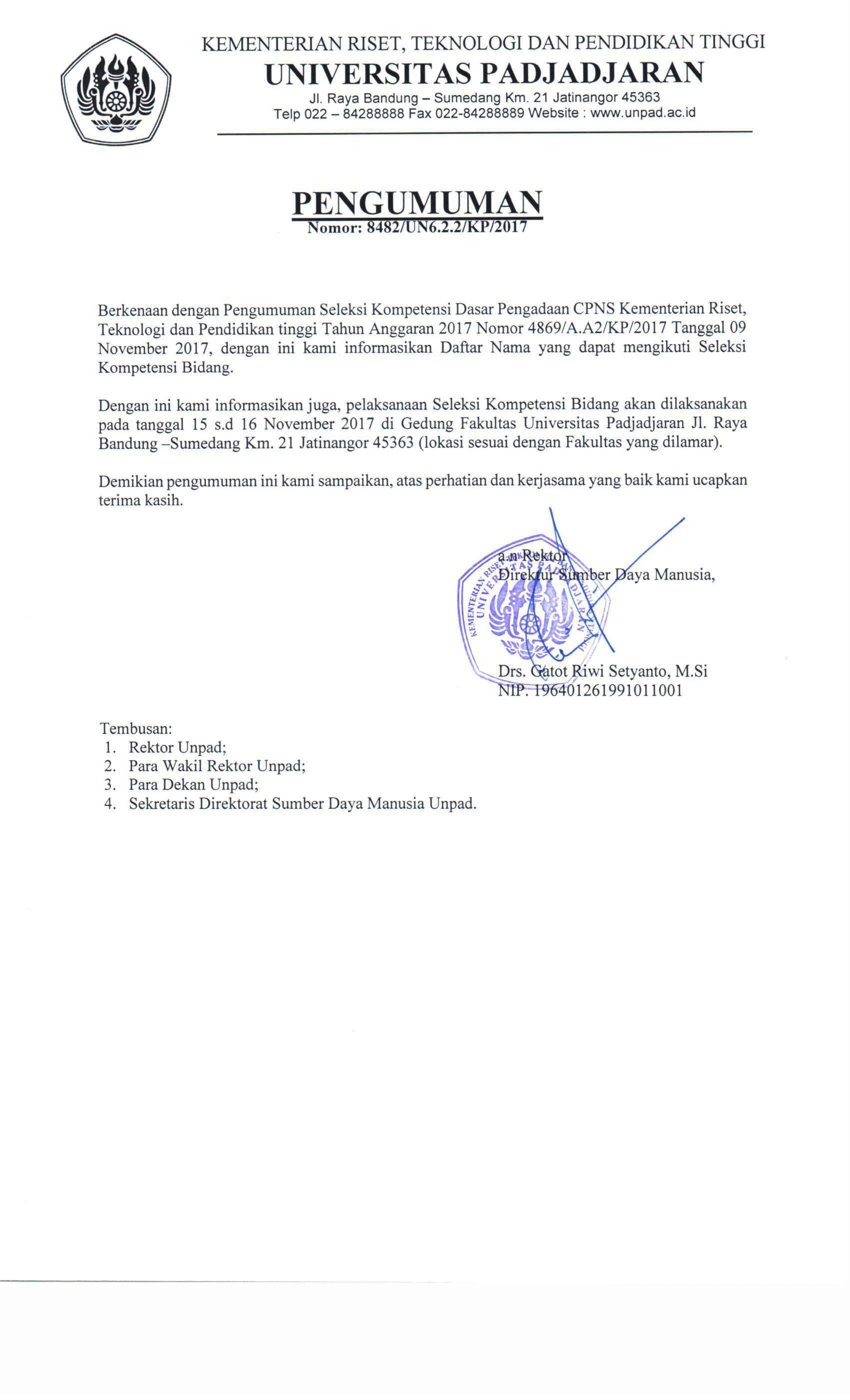 Pengumuman Pengumuman Peserta Seleksi Kompetensi Bidang Unpad Pengadaan CPNS Kemenristekdikti Tahun 2017 Kantor Komunikasi Publik 2017-11-10 1 min read 2017-11-10 Share this: Baca 1 menit 363 views Share this: