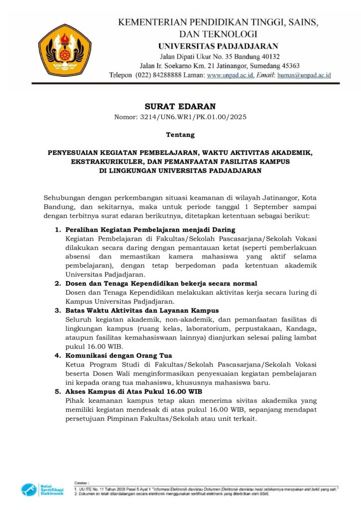 Pengumuman Penyesuaian Kegiatan Pembelajaran, Waktu Aktivitas Akademik, Ekstrakurikuler dan Pemanfaatan Fasilitas Kampus Erman 2025-08-31 1 min read 2025-08-31 Share this: Baca 1 menit 4979 views Share this: