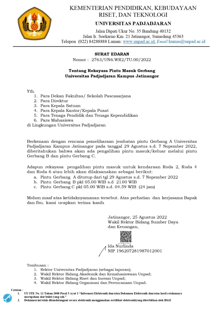 Pengumuman Rekayasa Pintu Masuk Gerbang Unpad Kampus Jatinangor Kantor Komunikasi Publik 2022-08-26 1 min read 2022-08-26 Share this: Baca 1 menit 1386 views Share this: