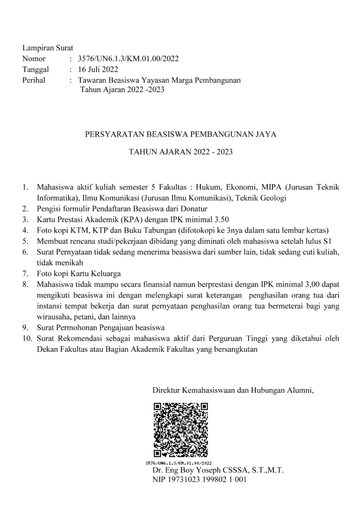Pengumuman Tawaran Beasiswa Yayasan Marga Pembangunan Jaya Kantor Komunikasi Publik 2022-07-05 1 min read 2022-07-05 Share this: Baca 1 menit 893 views Share this: