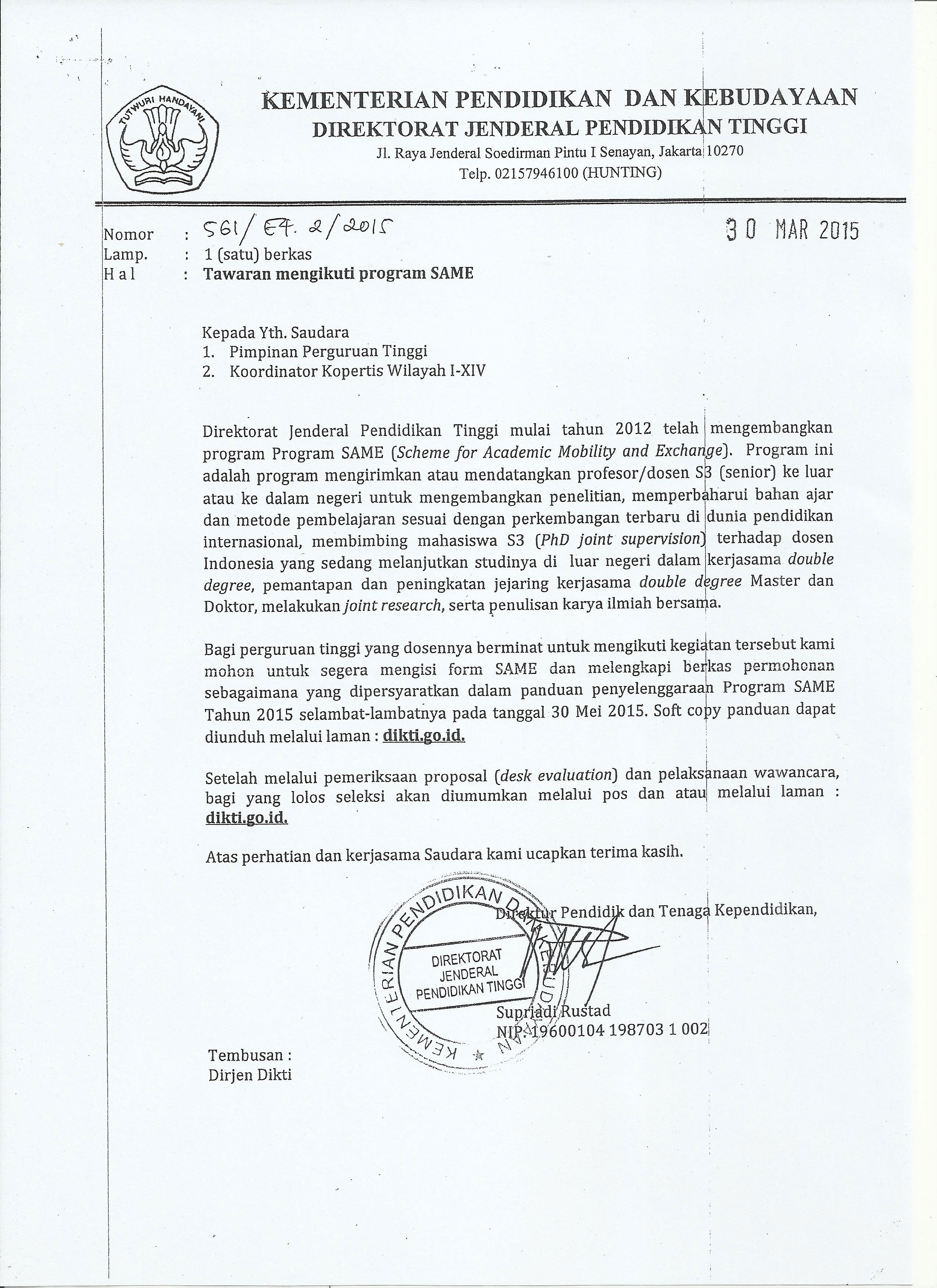 Pengumuman Tawaran Mengikuti Program SAME Ditjen Dikti 2015 Kantor Komunikasi Publik 2015-04-21 1 min read 2015-04-21 Share this: Baca 1 menit 675 views Share this: