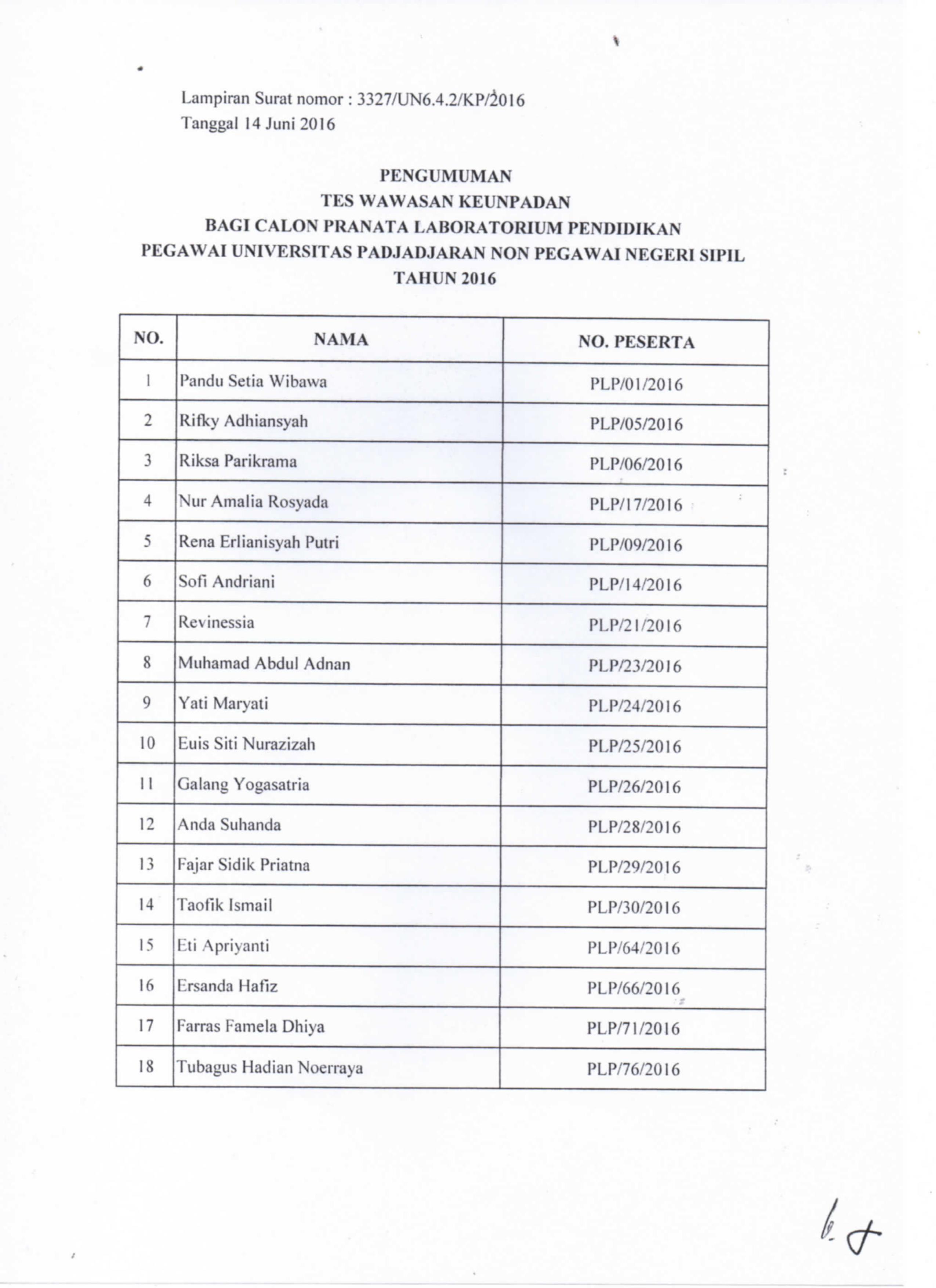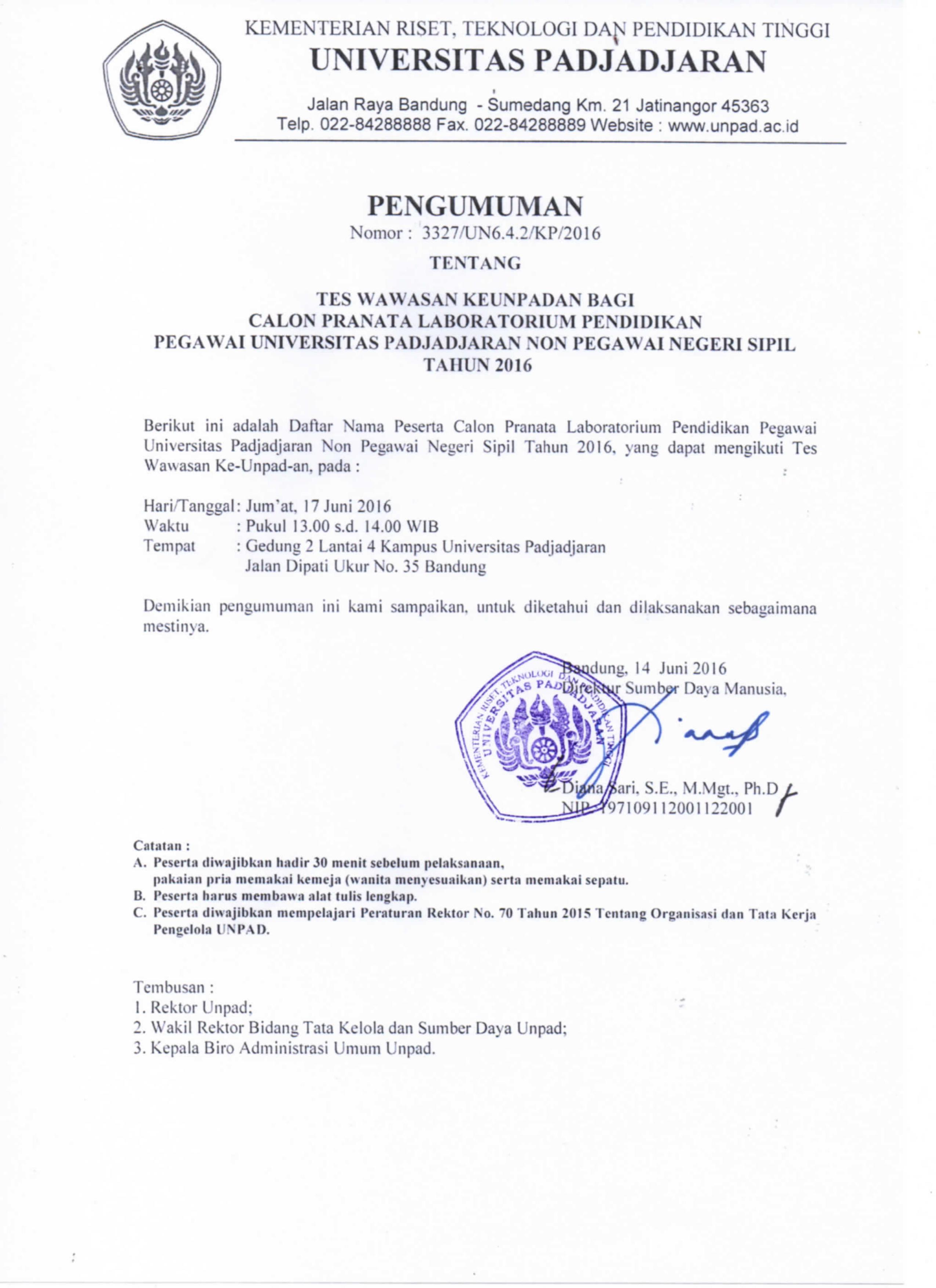 Pengumuman Tes Wawasan Ke-Unpad-an bagi Calon Pranata Laboratorium PendidikanPegawai Unpad NonPNS Kantor Komunikasi Publik 2016-06-14 1 min read 2016-06-14 Share this: Baca 1 menit 710 views Share this: