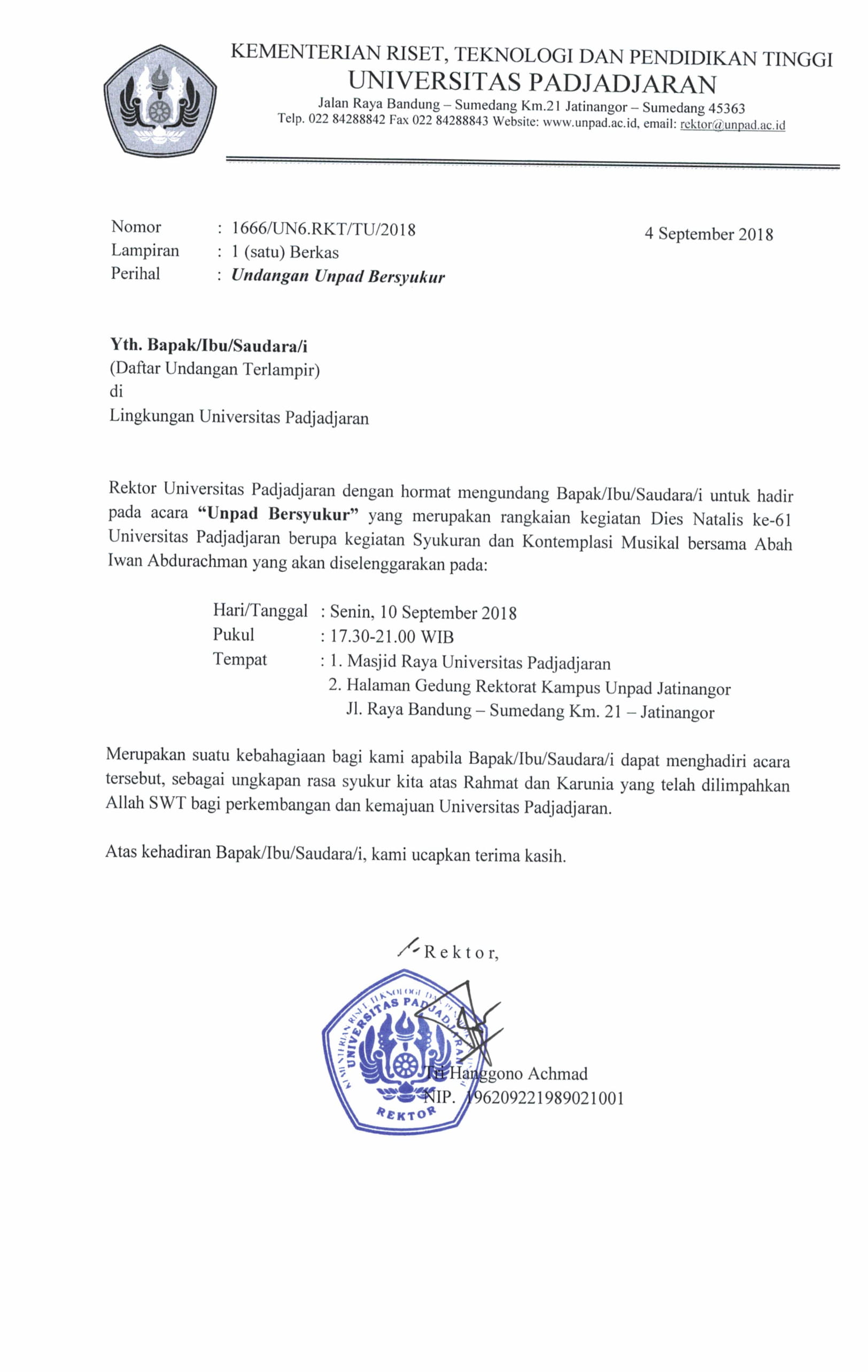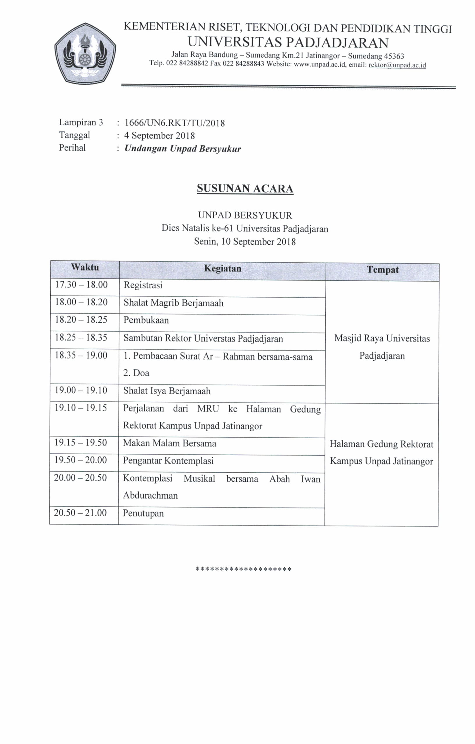 Pengumuman Undangan “Unpad Bersyukur” Kantor Komunikasi Publik 2018-09-06 1 min read 2018-09-06 Share this: Baca 1 menit 953 views Share this:
